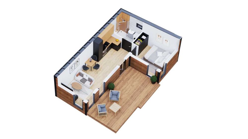 Dom modułowy nadający się do całorocznego zamieszkania grubość wełny 20cm.